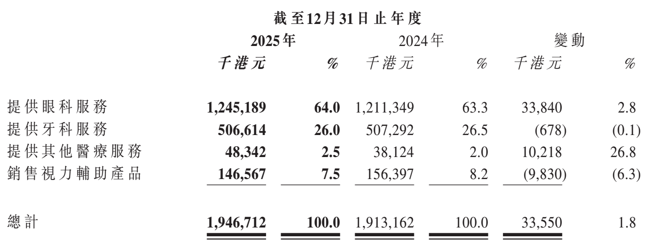 牙科业务2025年收益5.07亿港元 / 牙科就诊人次+13.9% / 内地牙科收益4.60亿港元